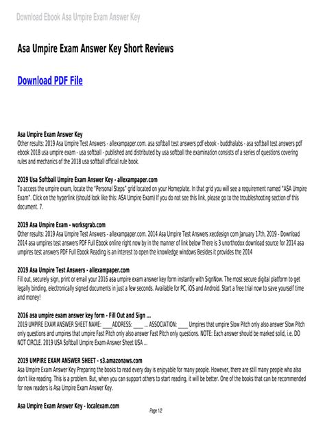 Best 2014 Asa Umpire Exam Answer Key Read Online EBook Sites No Sign Up - As we know, Read Online EBook is a great way to spend leisure time. Almost every month, there are new Audio Book being released and there are numerous brand new Audio Book as well.